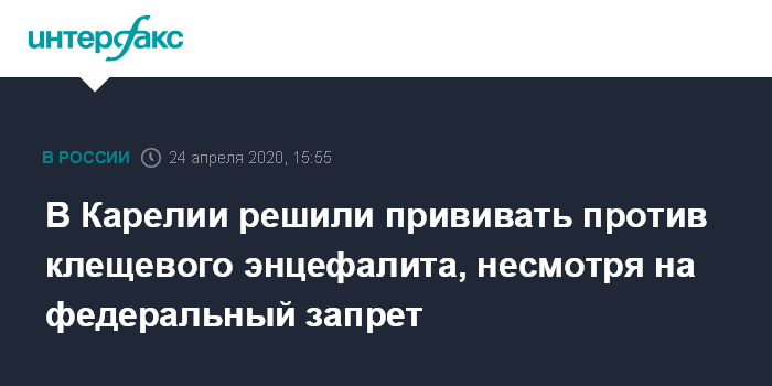 Москва. 24 апреля. INTERFAX.RU - В Карелии намерены провести вакцинацию против клещевого энцефалита, несмотря на федеральный запрет на профилактические прививки.
