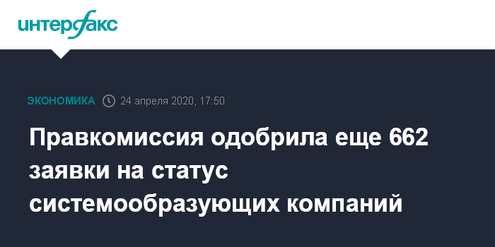 Правкомиссия одобрила еще 662 заявки на статус системообразующих компаний