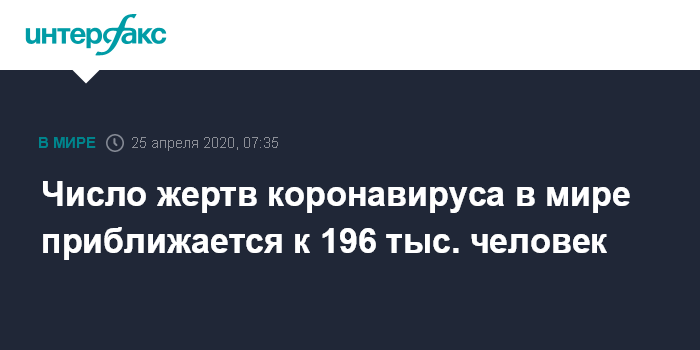 Число жертв коронавируса в мире приближается к 196 тыс. человек