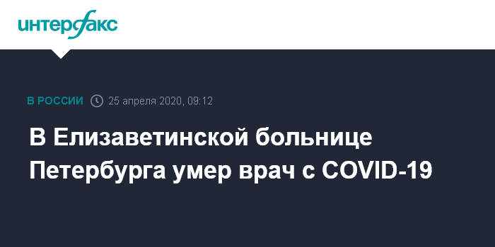 Москва. 25 апреля. INTERFAX.RU - Анестезиолог-реаниматолог Елизаветинской больницы Санкт-Петербурга Сергей Белошицкий умер от коронавируса COVID-19, сообщила администрация в официальной группе "ВКонтакте".