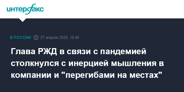 Глава РЖД в связи с пандемией столкнулся с инерцией мышления в компании и "перегибами на местах"
