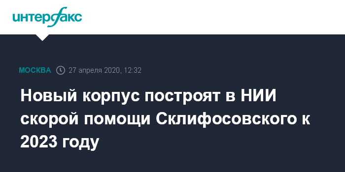 Москва. 27 апреля. INTERFAX.RU - Новый корпус для оказания экстренной помощи с вертолетной площадкой построят на территории НИИ имени Склифосовского, сообщили в понедельник в пресс-службе столичного департамента строительства.