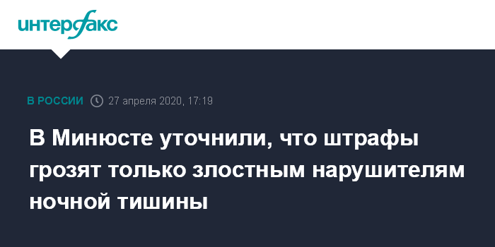 Москва. 27 апреля. INTERFAX.RU - Новая версия КоАП предусматривает, что штрафовать людей за однократное нарушение тишины ночью не будут, наказание грозит только злостным нарушителям, разъяснил замглавы Минюста Денис Новак в интервью "России-24".