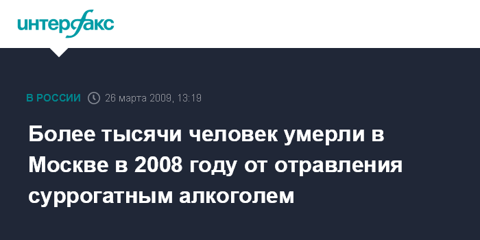 Более тысячи человек умерли в Москве в 2008 году от отравления суррогатным алкоголем