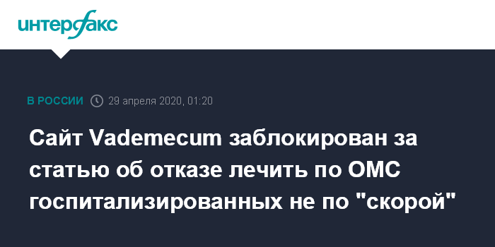 Сайт Vademecum заблокирован за статью об отказе лечить по ОМС госпитализированных не по "скорой"