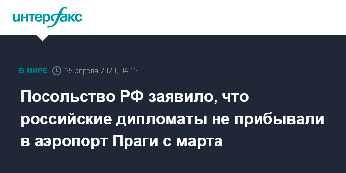 Москва. 29 апреля. INTERFAX.RU - Посольство РФ в Праге сообщает, что российские дипломаты не прибывали в пражский аэропорт с середины марта.