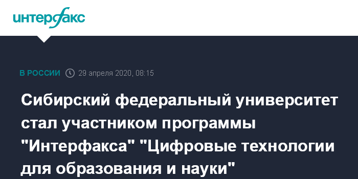 Москва. 29 апреля. INTERFAX.RU - Сибирский федеральный университет (СФУ) вошел в число участников Университетской программы "Интерфакса" "Цифровые технологии для образования и науки".