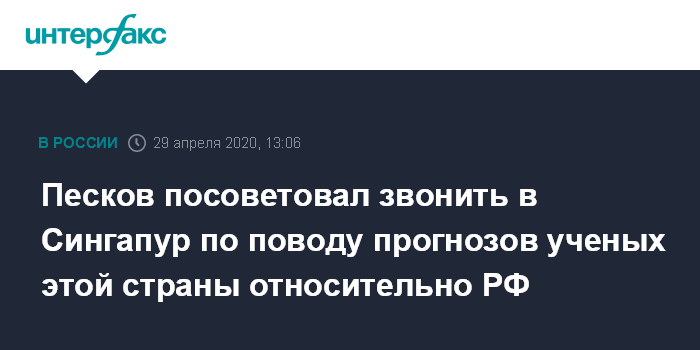 Песков посоветовал звонить в Сингапур по поводу прогнозов ученых этой страны относительно РФ