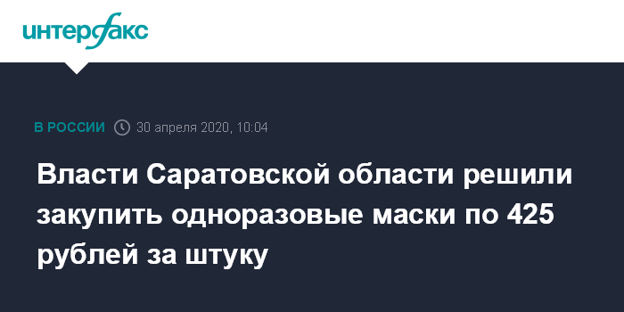 Власти Саратовской области решили закупить одноразовые маски по 425 рублей за штуку