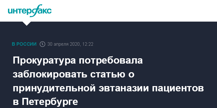 Прокуратура потребовала заблокировать статью о принудительной эвтаназии пациентов в Петербурге