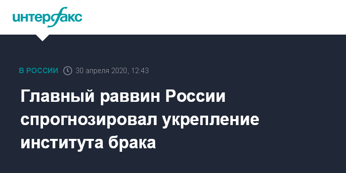 Москва. 30 апреля. INTERFAX.RU - Институт семьи и брака со временем укрепится и станет более востребованным, считает главный раввин России Берл Лазар. Он заявил это в ходе дискуссии с психологом Михаилом Лабковским на онлайн-площадке еврейского делового клуба "Соломон".
