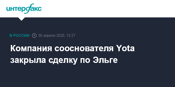 Москва. 30 апреля. INTERFAX.RU - "А-Проперти" сооснователя Yota Альберта Авдоляна стала владельцем 51%-ной доли в Эльгинском угольном проекте. Соответствующие изменения были внесены в ЕГРЮЛ 29 апреля, следует из данных системы "СПАРК-Интерфакс".