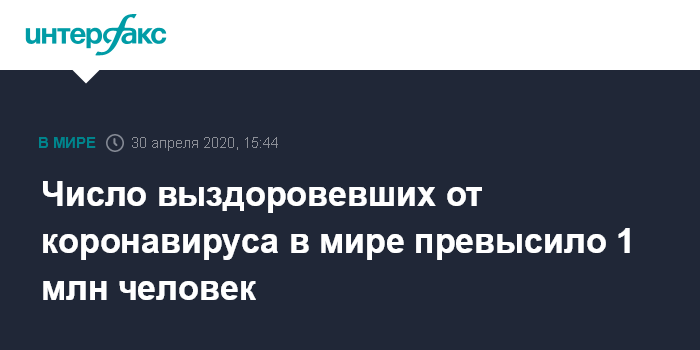 Число выздоровевших от коронавируса в мире превысило 1 млн человек