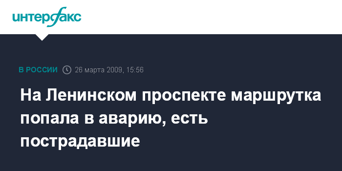Москва. 26 марта. INTERFAX.RU - В результате столкновения маршрутного такси с джипом на Ленинском проспекте пострадали три человека, сообщил "Интерфаксу" источник в правоохранительных органах.