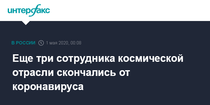 Еще три сотрудника космической отрасли скончались от коронавируса