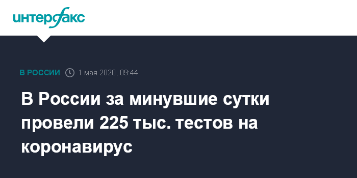 В России за минувшие сутки провели 225 тыс. тестов на коронавирус