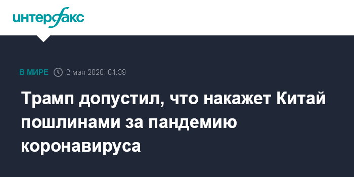 Трамп допустил, что накажет Китай пошлинами за пандемию коронавируса