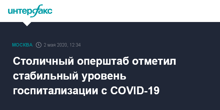 Москва. 2 мая. INTERFAX.RU - Число случаев госпитализации с коронавирусом в Москве остается на прежнем уровне, несмотря на увеличение тестирования и выявления заражения, сообщили "Интерфаксу" в оперативном штабе по контролю и мониторингу ситуации с коронавирусом в столице в субботу.