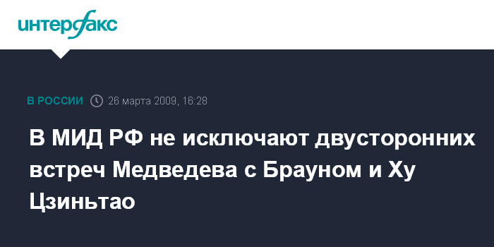 В МИД РФ не исключают двусторонних встреч Медведева с Брауном и Ху Цзиньтао
