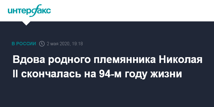 Вдова родного племянника Николая II скончалась на 94-м году жизни