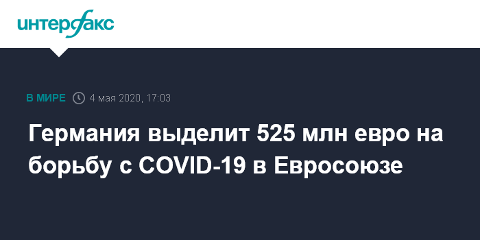 Германия выделит 525 млн евро на борьбу с COVID-19 в Евросоюзе