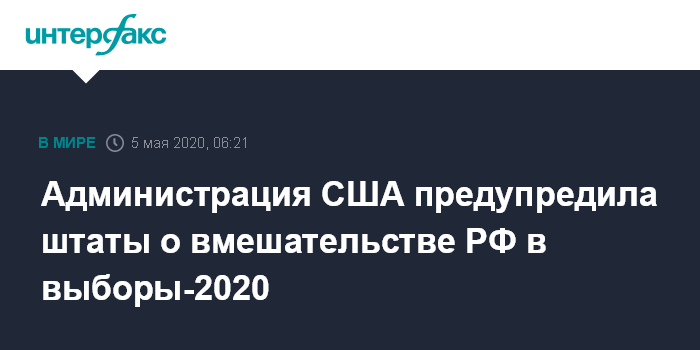Администрация США предупредила штаты о вмешательстве РФ в выборы-2020