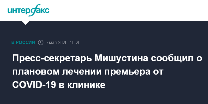 Пресс-секретарь Мишустина сообщил о плановом лечении премьера от COVID-19 в клинике