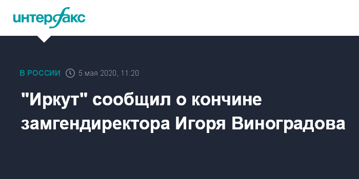 Москва. 5 мая. INTERFAX.RU - ПАО "Научно-производственная корпорация "Иркут" сообщило о смерти замгендиректора по сертификации и качеству гражданской авиатехники Игоря Виноградова.