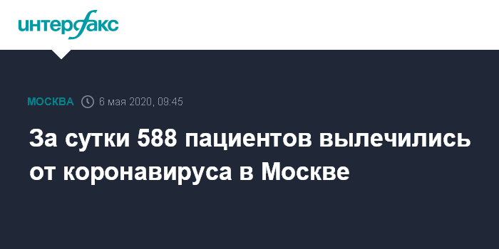 За сутки 588 пациентов вылечились от коронавируса в Москве