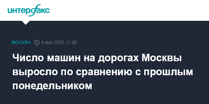 Москва. 6 мая. INTERFAX.RU - В первый непраздничный день мая число машин на московских дорогах увеличилось относительно прошлого понедельника, сообщили "Интерфаксу" в пресс-службе городского департамента транспорта.