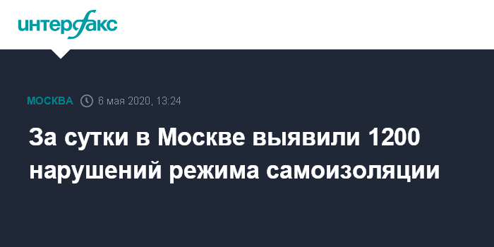 Москва. 6 мая. INTERFAX.RU - Порядка 1200 протоколов составлено в Москве за прошедшие сутки в отношении людей, которые вышли на улицу без уважительной причины, сообщил министр правительства столицы, начальник Главного контрольного управления города Евгений Данчиков.