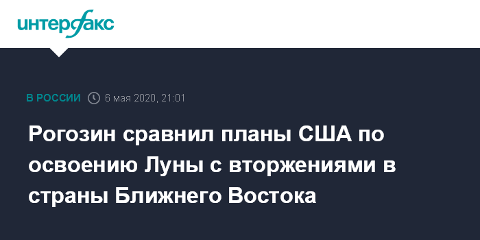 Москва. 6 мая. INTERFAX.RU - Соединённые Штаты Америки, планирующие добывать на Луне ресурсы самостоятельно, демонстрируют принципы, схожие с их действиями на Ближнем Востоке, считает глава "Роскосмоса" Дмитрий Рогозин.