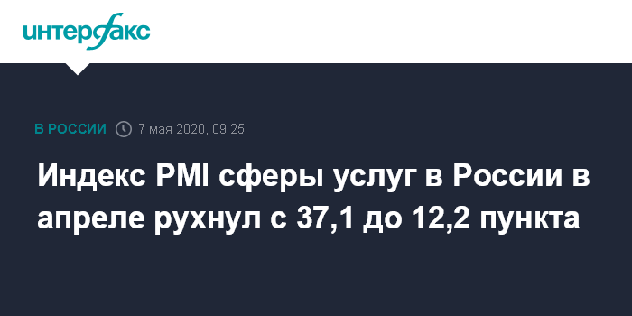 Москва. 7 мая. INTERFAX.RU - Индекс PMI сферы услуг России в апреле 2020 года рухнул до 12,2 пункта с 37,1 пункта в марте, свидетельствуют данные исследования IHS Markit.