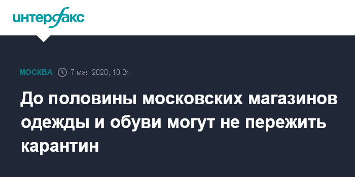 Москва. 7 мая. INTERFAX.RU - После отмены карантина в Москве могут не открыться до 50% магазинов одежды, обуви и аксессуаров, пишет "Коммерсантъ" со ссылкой на прогноз Fashion Consulting Group.