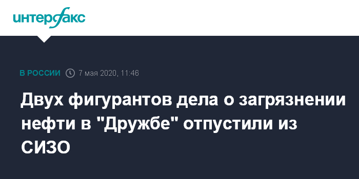 Двух фигурантов дела о загрязнении нефти в "Дружбе" отпустили из СИЗО