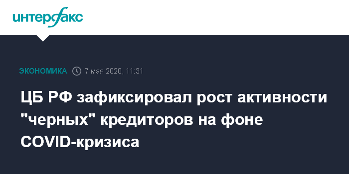 ЦБ РФ зафиксировал рост активности "черных" кредиторов на фоне COVID-кризиса