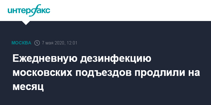 Москва. 7 мая. INTERFAX.RU - Проведения ежедневной дезинфекции подъездов многоквартирных домов продлено на месяц, сообщил заместитель мэра Москвы Петр Бирюков журналистам в четверг.