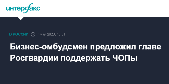 Бизнес-омбудсмен предложил главе Росгвардии поддержать ЧОПы