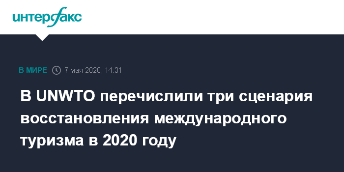 "Сейчас пандемия далека от завершения и нет никакой определенности по поводу перспектив восстановления туризма. По нашим оценкам, существуют три возможных сценария: первый предполагает падение международных турпотоков по итогам года на 58% в случае, если постепенное открытие границ и ослабление ограничений на поездки начнется в первых числах июля. По второму сценарию число поездок сократится на 70%, если эти меры национальные правительства осуществят в начале сентября", - сообщает организация.