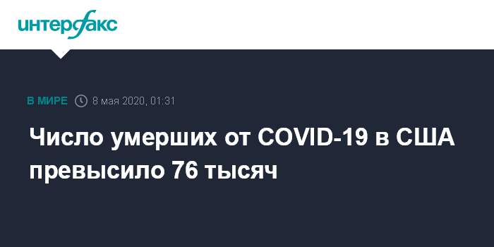 Число умерших от COVID-19 в США превысило 76 тысяч