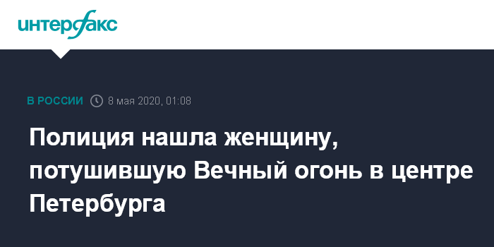 Москва. 8 мая. INTERFAX.RU - Петербургские полицейские установили личность женщины, которая потушила Вечный огонь на Марсовом поле, ею оказалась 27-летняя мать двоих детей, сообщили "Интерфаксу" в пресс-службе регионального главка МВД в четверг.