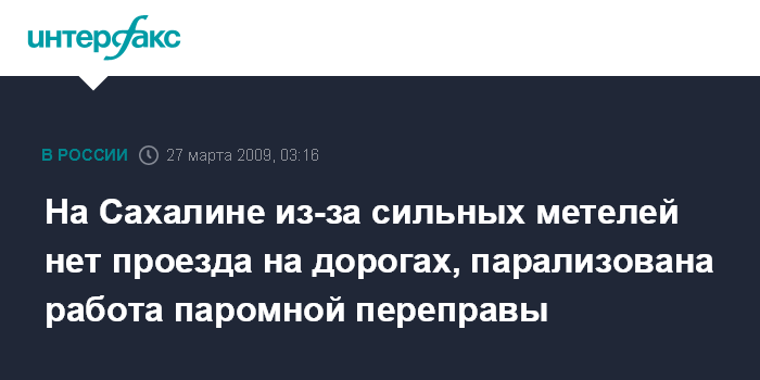 Южно-Сахалинск. 27 марта. ИНТЕРФАКС-ДАЛЬНИЙ ВОСТОК - На Сахалине из-за сильных метелей нет проезда на автотрассах в Макаровском, Поронайском, Томаринском районах. Затруднен проезд в Долинском районе, сообщили агентству "Интерфакс-Дальний Восток" в пресс-службе ГУ МЧС по Сахалинской области.