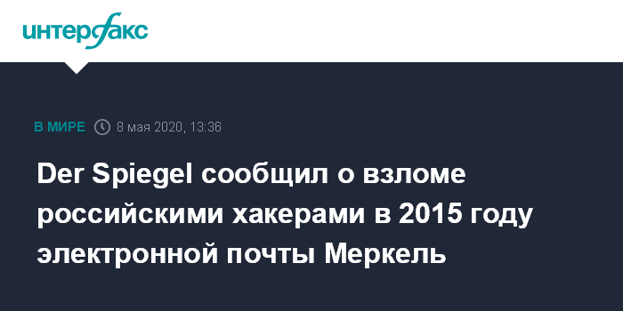 Москва. 8 мая. INTERFAX.RU - Тысячи электронных писем канцлера Германии Ангелы Меркель могли скачать российские хакеры в 2015 году, пишет в пятницу журнал Der Spiegel.