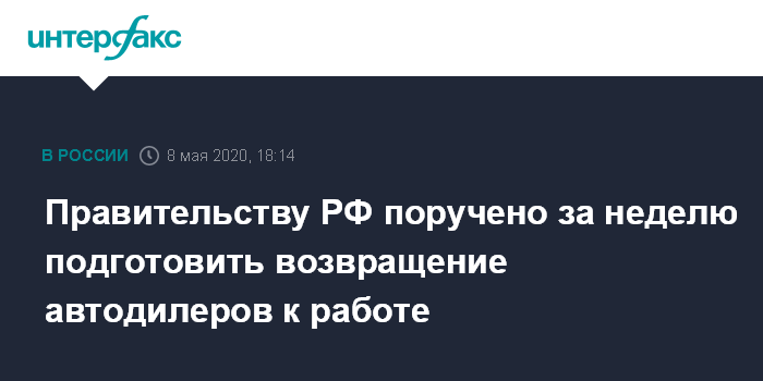 В ходе совещания 24 апреля Путин отметил, что дилерские центры по продаже автомобилей откроются в числе первых при проявлении такой возможности. Но уже сейчас, продолжил он, некоторые компании разворачивают работу в режиме онлайн, и у них это "хорошо получается". "Некоторые это делают на улице. Здесь тоже надо этому всячески способствовать. То есть возможность работать есть, ее нужно использовать", - сказал Путин.