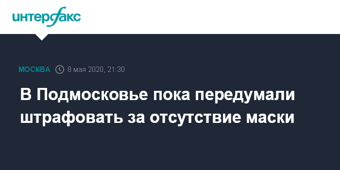 Москва. 8 мая. INTERFAX.RU - В Московской области пока не будут вводить штрафы за нарушение режима обязательного ношения масок, сообщил губернатор Подмосковья Андрей Воробьев.