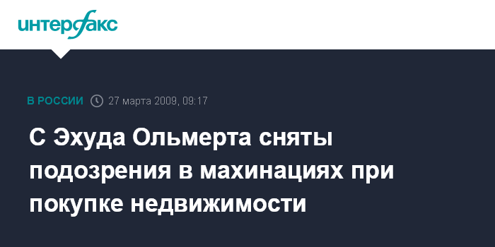 Москва. 27 марта. INTERFAX.RU - Израильская полиция в четверг объявила, что закрывает дело о предполагаемых махинациях, проведенных премьером Эхудом Ольмертом в его бытность мэром при покупке дома в Иерусалиме.
