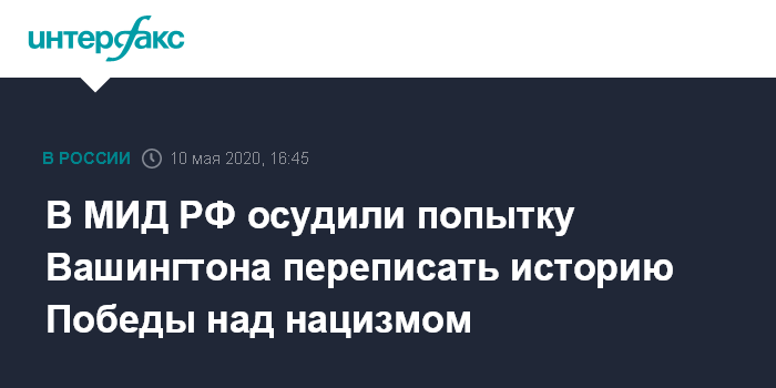 Москва. 10 мая. INTERFAX.RU - МИД РФ выступил с заявлением в связи с попытками в США переписать историю Победы над нацизмом.
