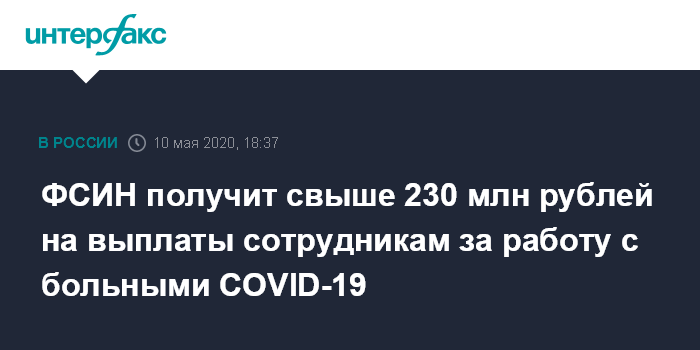 "Выделить ФСИН России из резервного фонда правительства Российской Федерации в 2020 году бюджетные ассигнования в объеме 230,1 млн рублей в целях осуществления дополнительного денежного стимулирования сотрудников подведомственных учреждений за работу с лицами, заболевшими коронавирусной инфекцией, имея в виду предоставление дополнительных выплат не менее 8,5 тыс. сотрудников", - говорится в сообщении на сайте правительства.