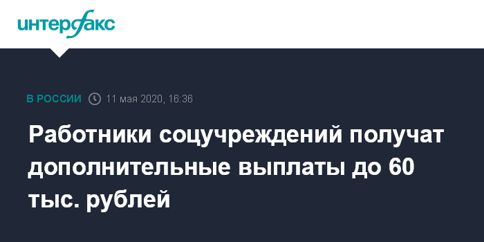 Москва. 11 мая. INTERFAX.RU - Президент России Владимир Путин заявил в понедельник о введении дополнительных выплат для работников соцучреждений.