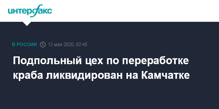 Москва. 12 мая. INTERFAX.RU - Пограничники обнаружили подпольный цех по изготовлению крабовой продукции на юге Камчатки, сообщает во вторник погрануправление ФСБ России по восточному арктическому району.